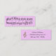 Change the lavender background to any colour that you like! Perfect for the musician or the music lover, this skinny profile card features a few measures of lively music on the front. On the reverse, a shining treble clef and a template for your name and contact info, or anything else you'd like to print. Doubles nicely as a book mark! To change background colour, just click "customise", then "edit", "background".