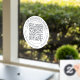 Modern, custom colour, round QR code, business name, and slogan window decal with elegant circle frame. This simple, professional template in a minimalist style can easily be updated with your QR code, business name, website, or other text. You can colour the individual elements according to your preferences at the design level. y.BEE PAPERIE #ZazzleMade #businessdoordecals #RoundQRCodedecals #Roundstorefrontdecals #RoundQRCodedoorsticker