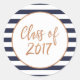 These stylish graduation stickers read "Class of 2017" in faux rose gold foil. The background colour can be customised to any colour you'd like!