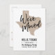 Moving to the great state of Texas? Make sure all your friends know how to find you at your new address with these snazzy moving announcements! Customise the colours to your preference - the state, arrows and any of the words. Matching products available.