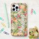 Contemporary coral red, pink, orange, yellow, and green tropical floral, pineapple, and stripes pattern. With room to customise or personalise with a name, monogram, or initials of your choice. Beautiful, modern, and cool cover for the trend-savvy and art-loving hip trendsetter, artsy motif lover who wants to protect their phone from dust and dirt, wear and tear. This design is available for Apple iPhone 6, 7, and 8 Plus, 10 or X, XR, XS, 11, 12, 13 Mini, 14, 15 Plus, and Pro Max cellphone cases. Show off your style, look fashionable, and feel stylish with a unique design on a mobile device accessory of your choice.