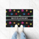Custom Colourful Paw Prints Pattern on Black Doormat