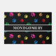 Welcome your guests and show your love for animals with this cute and colourful paw print patterned door mat. The paws seem to be waving "Hi". Use the provided template to personalise it with your name.
