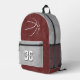 Choose your own colours! This basketball themed backpack is accented with the image of a minimalist basketball (only the seams are represented in white) - the front pocket can be personalised with the athlete's name and jersey number - you can customise the backpack's colours--access the Zazzle design tool by pressing the "Edit this design" button above to change the backpack component colours, currently maroon and light grey - a digitally-created, texture-look graphic overlies the backpack's individual components for a distressed appearance, which can be removed if desired - by katz_d_zynes