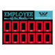Simple, cool employee of the month photo display featuring full custom colours and your choice of fonts along with your company logo and custom text, too, the perfect addition to your staff recognition and engagement efforts.