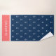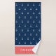 Nautical style towels featuring a white anchor pattern with an editable background colour, click the customise button for access and change the background colour for each respective towel. For the bath towel you can also add your name and to change the coral salmon colour, select the rectangle layer and change its colour.