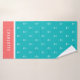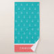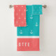 Nautical style towels featuring a white anchor pattern with an editable background colour, click the customise button for access and change the background colour for each respective towel. For the bath towel you can also add your name and to change the coral salmon colour, select the rectangle layer and change its colour.