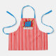 Cool and fun colourful bright blue, red, yellow and white coloured comic book pop art theme inspired motif on a cute white and red vertical stripes pattern design. With room to customise or personalise with name, monogram, initials, or (limited) text of your choice. Modern and artsy style for the trend savvy and whimsy art loving hip trendsetter, vintage retro look or abstract motif lover. Unique, pretty, decorative, fashionable and trendy birthday or Christmas gift for your loved ones, kids, friends or other family members who love to cook or tinker around in the kitchen.