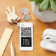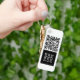 Keychain customised with your company logo and QR code on the front, and company information on the back. The background colour is customisable using Zazzle's design tool.