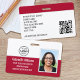Create a professional appearance with a branded employee ID badge. This editable template can be personalised with your profile photo, name, job title, company name, number, and logo. Return details are on the back, along with additional information, and a QR code. Perfect for creating a cohesive branding experience, or simply to verify the identity of the wearer and display their qualifications. This identification badge is ideal for customer-facing roles and corporate settings — from business consultants and retail stores to medical professionals, hospital staff, office workers, conference teams, corporate events and more. Custom badges build brand identity and enhance security. Printed colours: red, grey and white. Horizontal format.