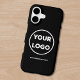 Look professional with a black branded phone case featuring your company logo and business website or slogan. Replace the sample logo and text with your own in the sidebar. Your logo can be circular, square, or another shape and white or in colour. Also makes a great gift for clients.