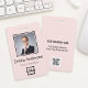 Easily personalise this blush pink custom employee name and photo badge with your own company logo and qr code or barcode. Available with different background colours and attachments. No minimum order quantity.