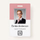 Easily personalise this custom pink employee name and photo badge with your own company logo and qr code or bar code. Available with different background colours and attachments. No minimum order quantity.