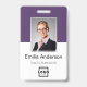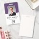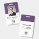 Easily personalise this custom purple employee name and photo badge with your own company logo and qr code or bar code. Available with different background colours and attachments. No minimum order quantity.