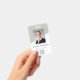 Easily personalise this custom sage green employee name and photo badge with your own company logo and qr code or bar code. Available with different background colours and attachments. No minimum order quantity.