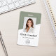 This striking vertical badge design uses a bold diagonal divide between sage green and crisp white for a dynamic, contemporary flair. The layout perfectly showcases the employee's photo in the upper section while cleanly displaying the name, title, and your logo below. This artistic use of negative space creates a memorable and highly professional badge that stands out.