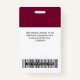 Easily personalise this Custom Administrative professional Name Badge without photo, with Scan Bar Code and large business logo. A simple business design in burgundy cherry wine red and white colours fully customisable in front and back sizes, sans-serif basic and modern fonts and a professional and clear look, perfect for small business employee, boss, guests. These business id badges supplies are avaiable with lanyard, metal clip or with retractable. No minimum order, but save money and enjoy Zazzle discounts by multiple orders!