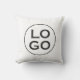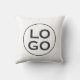 This custom throw pillow features a sample logo framed with a black circle on a white background. You can personalise the pillow to include your own business or company logo or other custom image.