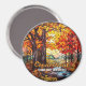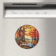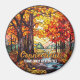 Cute faux stained glass autumn forest scene, personalizable trip souvenir. Great for Christmas and family vacation keepsake, or honeymoon keepsake.