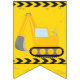 Cool custom construction vehicle Happy Birthday bunting banner for a child who loves yellow construction vehicles in black and yellow. Fun vehicle design for a little boy who loves cars and trucks. Customize with your kid's age under the black and yellow caution tape next to an excavator and cement mixer.