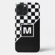 Cool auto racing flags design on a black and white chequered background. With room to customise or personalise with a name, monogram, or initials of your choice. This whimsical stylish hipster design is made for the race car and motorsport sport lover, go-kart racing fan, dirtbike champ, and anybody else who loves car, motor, and auto sports. Modern, and cool cover for the trend-savvy and art-loving hip trendsetter, artsy motif lover who wants to protect their phone from dust and dirt, wear and tear. This design is available in Apple iPhone 6, 7, and 8 Plus, 10 or X, XR, XS, 11, 12, and 13 Mini, 14, 15 Plus, and Pro Max cellphone cases. Show off your style, look fashionable trendy, and feel stylish with a unique design on a mobile device accessory of your choice.