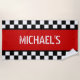 Custom Cool Black White Chequered Flag On Red Beach Towel