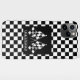 Cool auto racing flags design on a black and white checkered background. With room to customize or personalize with name, monogram or initials of your choice. This whimsical stylish hipster design is made for the race car and motorsport sport lover, go-kart racing fan, dirtbike champ, and anybody else who loves car, motor and auto sports.