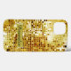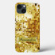 A cool gold sequins metallic look background pattern close up of a retro sparkling, shiny disco style mirror ball globe. This unique popular iPad Mini, or other models available, case is decorative, cool, and fun! Note that this fun bling design is not actually made with sequins or glitter but has the look of it. Easily personalise with any text, name, or monogram initials, onto the (printed) gold nameplate graphic design. Rich looking, yet affordable!
