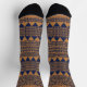 Custom Copper Brown Dark Navy Blue Aztec Pattern Socks