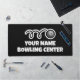 Custom counter desk mat for bowling centre. Personalise with your own business name and logo. Black or custom colour. Modern template design.