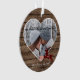 Cute December Christmas holiday tree ornament with room to personalise or customise with names of your choice in an elegant font script, a personal photo and year date of your choice. Framed by a stylish heart shape on a rustic farmhouse or log cabin wooden planks pattern background. Unique memories keepsake that your other half will love!