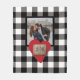 Rustic wooden engraved printed design with handwritten couple initials and date and your custom photo over a black and white gingham plaid pattern. Cute personalised keepsake gift for engagement, wedding, newlyweds, or boyfriend girlfriend Valentine's love gift.