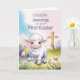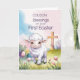 Designed for flexibility, this Baby’s First Easter card allows you to personalise the relationship while preserving the faith-centred theme. The artwork features a tender lamb in a bright spring setting, with colourful eggs in the grass and a wooden cross rising beyond, reflecting the joy of Resurrection Sunday. The soft pastel background and gentle composition create a sweet and meaningful atmosphere ideal for a baby milestone. A thoughtful option for Christian and Catholic families seeking a customised first Easter keepsake.