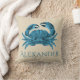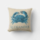 The Crab in a modern blue colour on a sand background echoing the ocean.