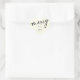 A heart shaped Christmas/Holiday sticker or envelope seal featuring a handwritten script saying 'merry'. The rest of the text is fully editable. Available in other colours and sticker shapes in my store.