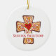 Custom Cross Keepsake w Heart for Church Youth Ceramic Ornament