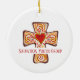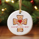 Celebrate your faith with this customisable Christmas ornament, perfect for your youth group or church group! Featuring a beautifully detailed cross with a red heart at its centre, this ornament symbolises pride in Christianity and faithfulness. Surrounded by vibrant scrolls in shades of red, brown, yellow gold, and blue, the intricate design is both whimsical and joyful. The brown outline adds a unique touch, making this ornament a standout piece. Customise it for your church youth group or choir to share the message of faith in a fun and playful way. A perfect Christmas gift that reflects solidarity and devotion to Christian values!