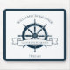 Chic custom summer vacation mouse pad for a beach cruise line on the ocean featuring a navy blue boat steering wheel. This nautical themed design is perfect for a sailor or ship captain on the seaside. Personalise with your own text.