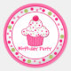 Pretty birthday party stickers, with adorable graphics of a cupcake, in the middle. A whimsical polka dot frame around the edges and pink text reading Birthday Party finishes off this yummy party favour or envelope seal. Personalise the text if you want it to say something different.