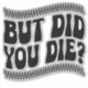 Add a touch of humour to your vehicle with this funny "But Did You Die?" car decal. Perfect for those who love witty and sarcastic messages, this high-quality vinyl decal is easy to apply and durable. Ideal for cars, trucks, laptops, and more, it makes a great gift for friends and family who appreciate a good laugh.