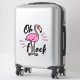 The stick looks amazing. Unfortunately, it would not stick on our suitcase as it was textured. When we found a non-textured (smooth) suitcase, the sticker stuck and looks great. The printing looked awesome.
