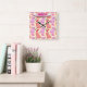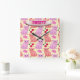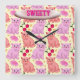 Custom Cute Cat Cherry Floral Pattern Square Wall Clock
