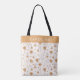 This tote bag features a delightful Halloween-themed floral pattern in warm autumnal shades, with cute illustrations of ghosts, pumpkins, and stars, all set against a soft beige background. The top portion is personalised with your name in a simple and elegant font, adding a personal touch to the design. The combination of earthy tones and whimsical Halloween elements makes this tote bag a perfect accessory for the season, whether you're heading out for Halloween festivities or just enjoying the fall vibes.