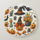 Bring playful spooky vibes to your space with this round Halloween pillow featuring pumpkins, black cats, witch hats, candy corn, and autumn leaves in a colourful cartoon style. Perfect for cosy corners, haunted lounges, or festive party décor. Personalise it with a name or message to make it uniquely yours! Soft brushed polyester and machine washable—ideal for seasonal comfort and charm.