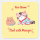 Add a touch of feline charm with this cute kawaii cat sticker, featuring an adorable kimono cat and a chubby kitty with the playful phrase "Stick with Meowgic!" Perfect for gift packaging, party favours, laptop decor, and scrapbooking. Personalise it with your name to make it extra special. Great for cat lovers, Japanese culture fans, and stationery collectors. Ideal for birthdays, holidays, and special occasions!