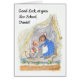 A 'Good Luck at your New School' greeting card, with a little mouse leaving Mousehole Cottage to set off for his first day at school. This design is from a hand-painted watercolour illustration by Judy Adamson. You can personalise the front cover as well as the inside message.