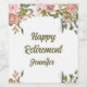 Custom Cute Pink Floral Greenery Happy Retirement Wine Label