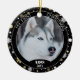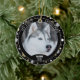 Custom Cute Puppy Photo On White Gold Snowflakes Ceramic Ornament