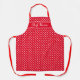 Custom cute red and white polka dots pattern kitchen Apron. Custom cooking and baking aprons for women and men. Personalised with your name or funny quote. Pretty fashion print design with elegant typography template. Create your own unique Birthday party gift for cute mum, bride, dad, father, mother, wife, daughter, sister, brother, bride, husband, friend, grandma, grandpa, kids, boss, co worker, chef, cook, colleague, employee, barista etc. Available in small, medium and big extra large size. Also great for dinner party, art & crafts work, bakery shop, DIY home projects, business, restaurant work, coffee shop etc. Polkadots design. Customise the looks to any colour. Make dots big or small. Long and short versions available. Full All over print.