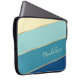 Keep your new electronic device safe from scuffs and scratches with this stylish protective contemporary girly classic blue, teal turquoise, mint green and pastel yellow coloured striped water resistant neoprene laptop sleeve with zipper. With room to customise with name, monogram or initials of your choice. Beautiful, modern and cool cover for the trend-savvy and art-loving hip trendsetter, or trendy retro chic look style motif lover.